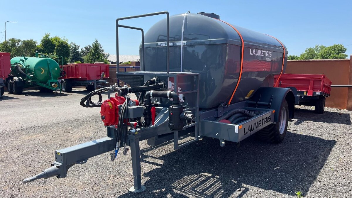 Cisterna na vodu, DAM, postřiky.. LAUMETRIS PTL-8V Nosnost/objem 8t (8,5 m/3) materiál nádrže silnostěnný sklolaminát stavoznak pneumatiky 500/45-22.5 obslužná lávka mechanická opatrná noha rozměry, d/š/v, mm - 6200/2450/2400 váha, kg - 2100 podtlakové čerpadlo VOGELSANG 0,7 m3/min... traktor - 80k Tel +420608330 166 649.000Kč bez DPH, skladem záruka TP Litevský LAUMETRIS vyrábí cisternu pro vodu DAM a postřiky s podtlakovou sklolaminátovou nádrží. Jedna z jejich funkcí je ochrana vodních nádrží před znečištěním chemickými prostředky pro ochranu rostlin. Pomocí cisterny pro vodu PTL-12V je možné čerpat vodu z určených míst nebo napouštět přes horní víko. Odstředivé čerpadlo dovoluje zamíchat vodu uvnitř cisterny nebo dodávat vodu do postřikovače zvlášť a izolovaně od sací magistrály. Ve stejné větvi je namontovaný systém filtrů jemného čištění s možností zvolení rozměru jemnosti filtru - od minimální velikosti (76 mikronů) až do maximální (980 mikronů). Během míchaní se voda ohřívá d