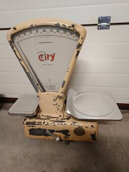 Mechanická váha poštovní zn. CITY.se sadou závaží. Původní stav, funkční.