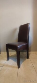 židle, dřevěná podnož, koženkový hnědý potah, 6 kusů k dispozici, 48x50/106cm, gastro vybavení