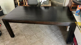 Prodám jídelní stůl v černé barvě. Stůl je vyrobený s kvalitního palisandrového dřeva dovezený z Indie. Stůl je nádherný, pevný a robustní. Jen má úzkou prasklinku ve spoji na vrchní desce. ( není to nic hrozného ) Doporučuji pokud bude umístěn do jídelny doma, tak zbrousit a nastříkat znova ( stolař udělá za pár korun ). Pokud bude stůl na chatu nebo vinného sklepa, tak je ideální i ve stavu, jakém je. Cena symbolická. Nákup stolu byl znatelně vetší.