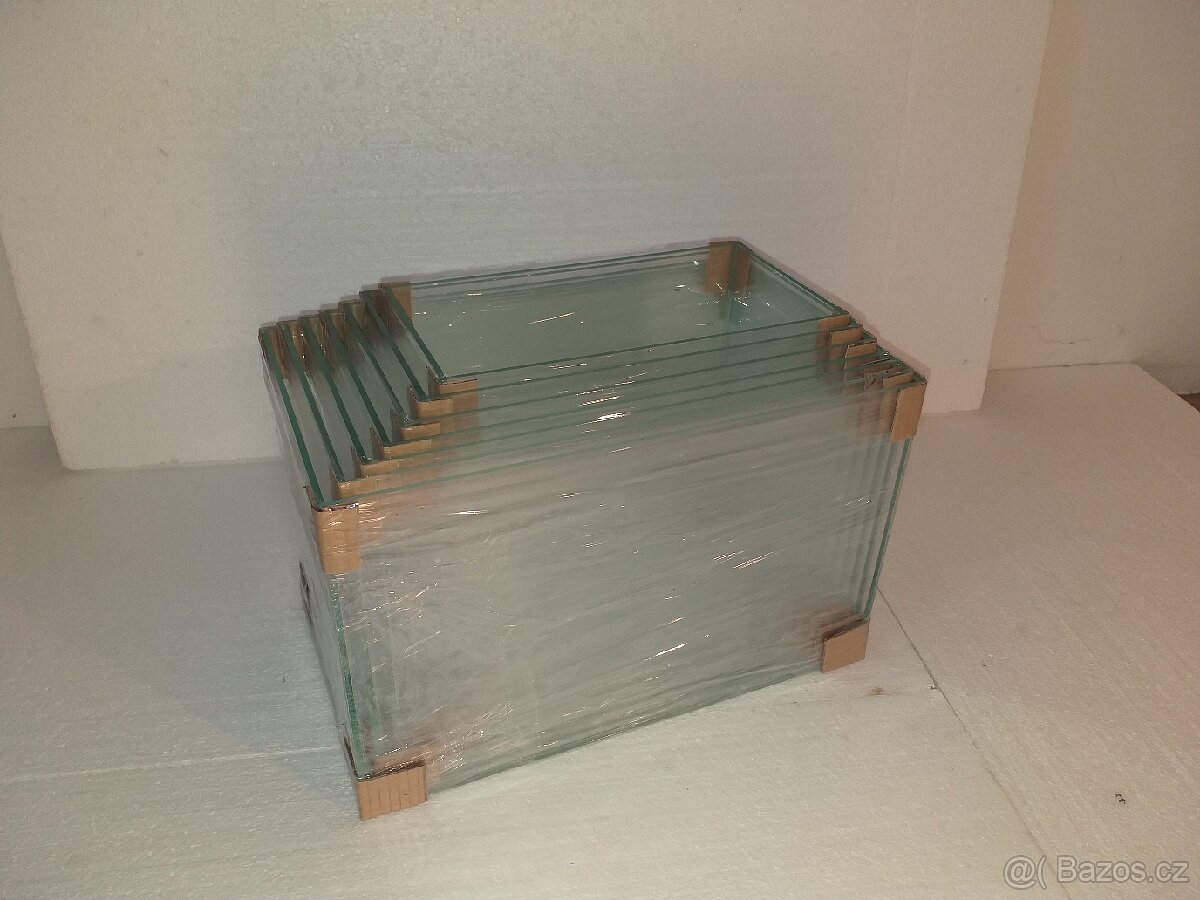 Akvarijní sada střední se skládá ze 5 následujících akvárií: D x V x Š - Kč/ks 30l akvárium - 41 x 34 x 22 - 500,- 35l akvárium - 44 x 34 x 24 - 580,- 40l akvárium - 47 x 34 x 25 - 640,- 45l akvárium - 50 x 34 x 27 - 700,- 52l akvárium - 53 x 34 x 29 - 780,- Síla skla 4mm. Každé akvárium v sadě má své krycí sklo. Lze také prodat po jedlotlivých kusech.