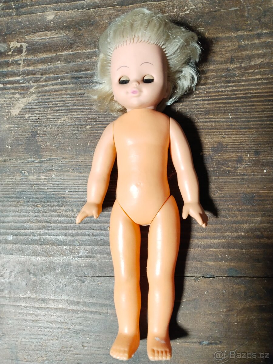 Prodám hezkou retro panenku, vysoká 32 cm, hnědé oči.