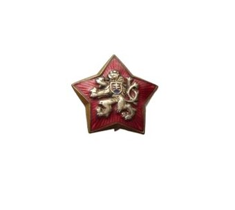 Jehlicový odznak ve tvaru červené pěticípé hvězdy se zlatým lemováním, uprostřed je stříbrný lev (český heraldický lev) a na jeho hrudi slovenský štít s dvojkřížem, kovové provedení, smaltovaná hvězda, kvalitní ražba.