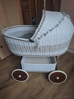 Prodám krásný, prostorný mojžíšův koš pro miminko. Bílo hnědá kombinace, jde s ním krásně přejíždět po bytě, ložná plocha 80cm, s matrací a úložným košem na věci. Přidám silnější fleecovou dečku. Mohu i zaslat přes dopravce
