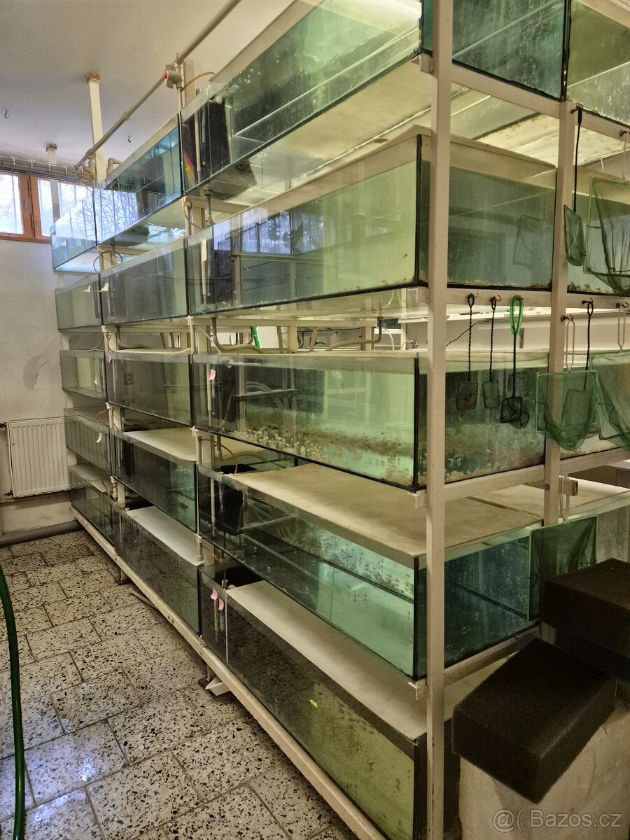 Cena: Dohodou. Prodám chovnu akvarijních ryb, mám jinou. Jsou k tomu stojany, akvaria mají vrtané dna,jednoduché čištění. Můžete mi klidně nabídnout něco na výměnu, peníze nutně nepotřebuji. Dohoda.