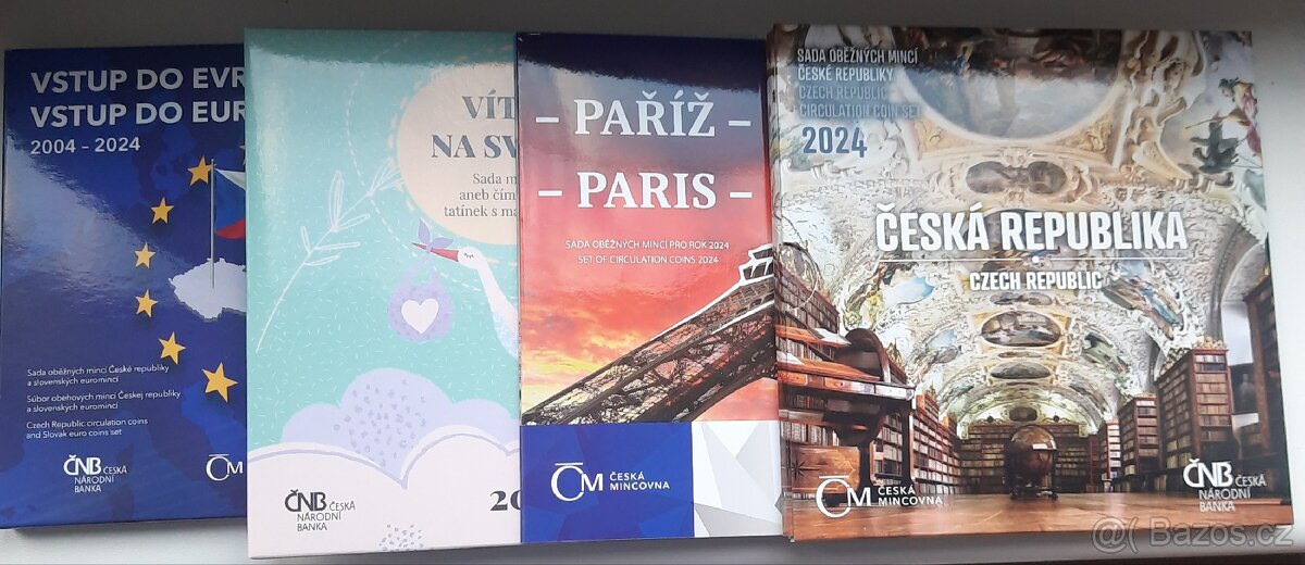 Cena: V textu. Sady oběžných mincí 2024: Vítej na světě 850, Paříž 890, Česká republika 950, Vstup ČR do EU 1590. Osobní předání Praha 4 Podolí nebo zašlu Balíkovnou/Zásilkovnou/Cenným psaním po platbě předem +75/85/110 Kč. Ohledně podrobností předání, dopravy apod. preferuji komunikovat přes email, nikoliv sms, protože většina sms začíná slovy "je to aktuální?" a pak to nikam nevede, děkuji za pochopení. Pokud vidíte tento inzerát- je aktuální! Podívejte se, prosím, na mé další inzeráty.