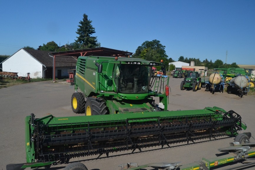 Nabízím kombajn John Deere T 660i. Jako nový (r.v. 2019). Motohodiny: 1.829 motor, 1.266 buben. Prodloužený vál. Vč. žací lišty šíře 9,2 m. Obě nápravy podvozku řiditelné.