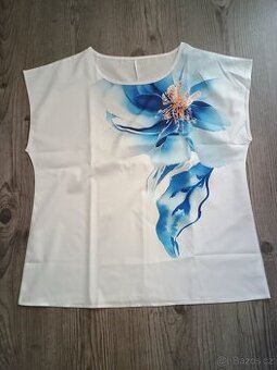 Nové dámské triko s obrázkem modrého květu velikosti M. Cena 59,-