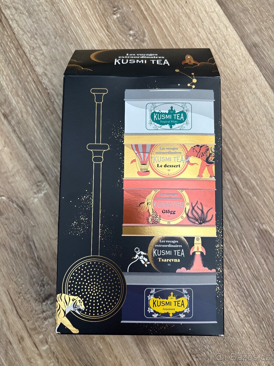 Nové, neotevřené. PC 940kč Balení obsahuje: 1x bio černý vánoční čaj Tsarevna s pomerančem, vanilkou a kořením 1x bio bylinný vánoční čaj Glögg s ibiškem, rybízem a kořením 1x bio zelený vánoční čaj Le Dessert s jablkem, vanilkou a mandlemi 1x černý čaj Anastasia s bergamotem, citronem a květy pomeranče 1x bílý čaj Tropical White s mangem a marakujou 1x kovový teleskopický čajový infuzér