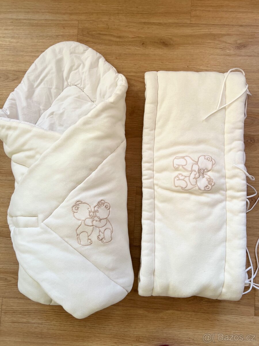 Zn.Esito - Cena za celý komplet. mantinel-délka 173cm,šířka 23,5cm Zavinovačka- 80x80cm.Smetanovo bílá barva..Na mantinelu skvrnka-nepatrná,plně funkční suchý zip