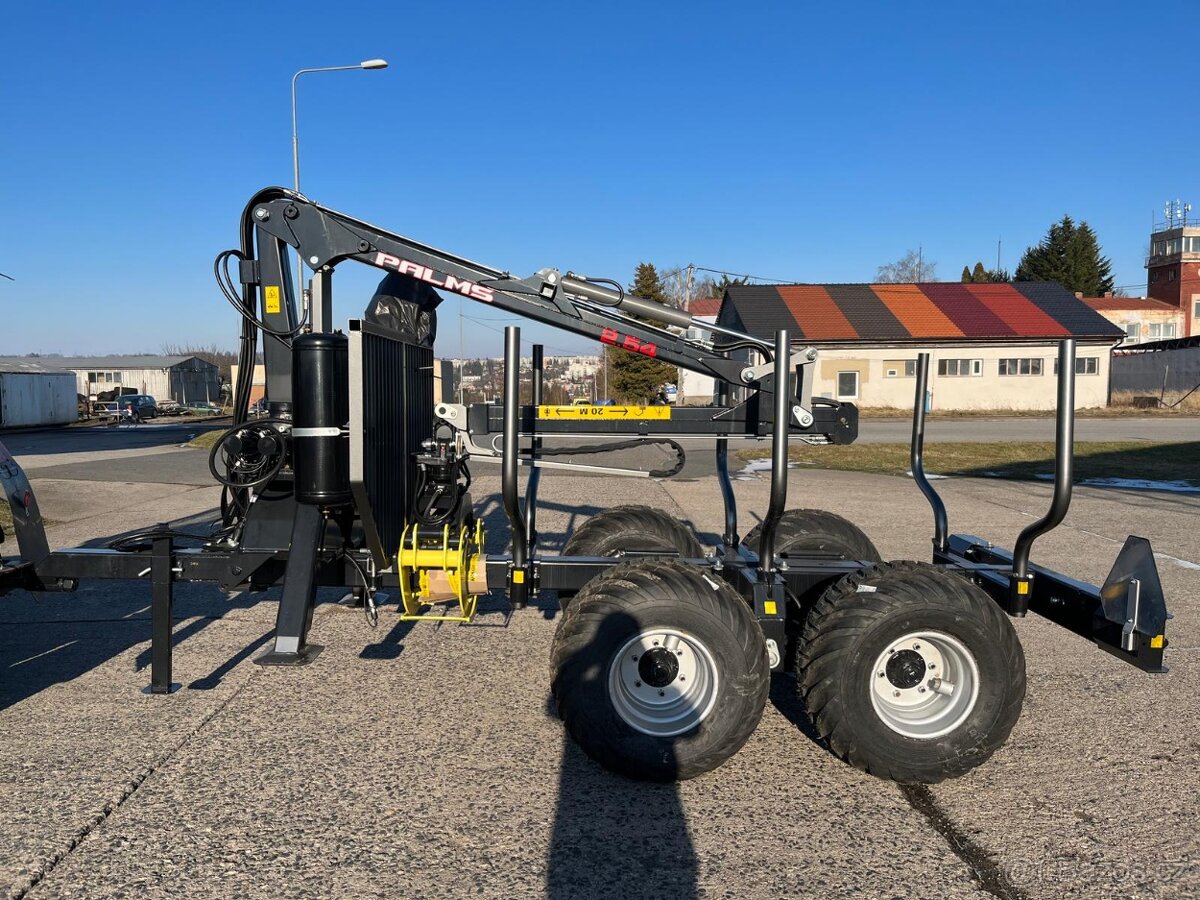 Vyvážečka Palms 6S, skladem, nosnost 6t, hydraulický jeřáb Palms 2.54, natáčecí oj, bržděné nápravy, hydraulicky výklopné nohy, záruka tři roky, světla, technické osvědčení pro provoz na pozemních komunikacích, vysokotlaký filtr, brzda rotátoru.Cena je +DPH.