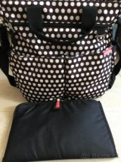 Oddělené kapsy umožňují větší přehlednost (celkem 10 praktických kapes). Tašku lze pohodlně zavěsit na kočárek, nebo ji nosit volně přes rameno, či v ruce. Obsahuje patentované „Shuttle Clips“, díky nimž lze ramenní popruh lehce odepnout nebo nechat na tašce. (dle vašeho vkusu) Odepněte menší přezku, obtočte pás kolem rukojeti kočárku a zajistěte. Větší sponou se odepíná ramenní popruh. Protiskluzové popruhy na kočárek. Součástí boční kapsa na láhev a kapsa na mobilní telefon. Kapsy se zapínají na magnety nebo zipy. Uvnitř tašky kontrastní podšívka, díky níž uvnitř vše lehce najdete. Taška dále obsahuje polstrovanou přebalovací podložku. 0% BPA, bez ftalátů. Testováno dle směrnic EU. Materiál: vnější/vnitřní – polyester. Rozměry: š 33 x h 35 x d 11