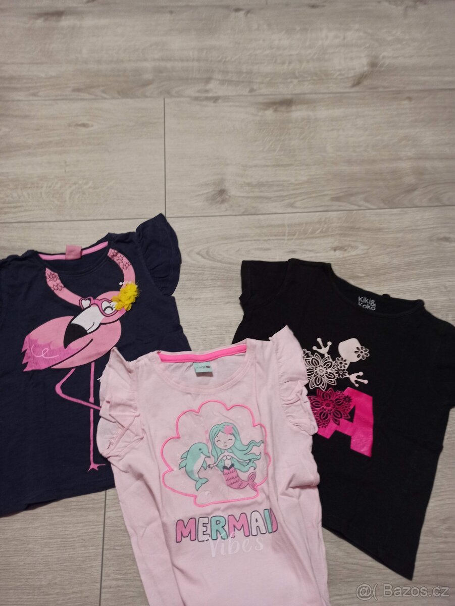 Prodám 3 ks dívčích triček s krátkým rukávem zn. KIK, vel. 98 a 104
