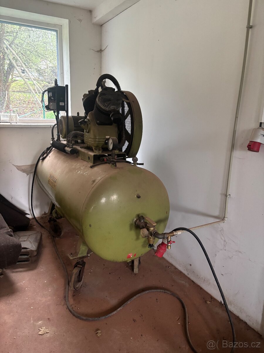 Dvoupistovy, 10 bar, nutno vyměnit elektrospinače 3 ks, cena 1500,- kus, nebo po dohodě nechám opravit a cena kompresoru se navýší o opravu