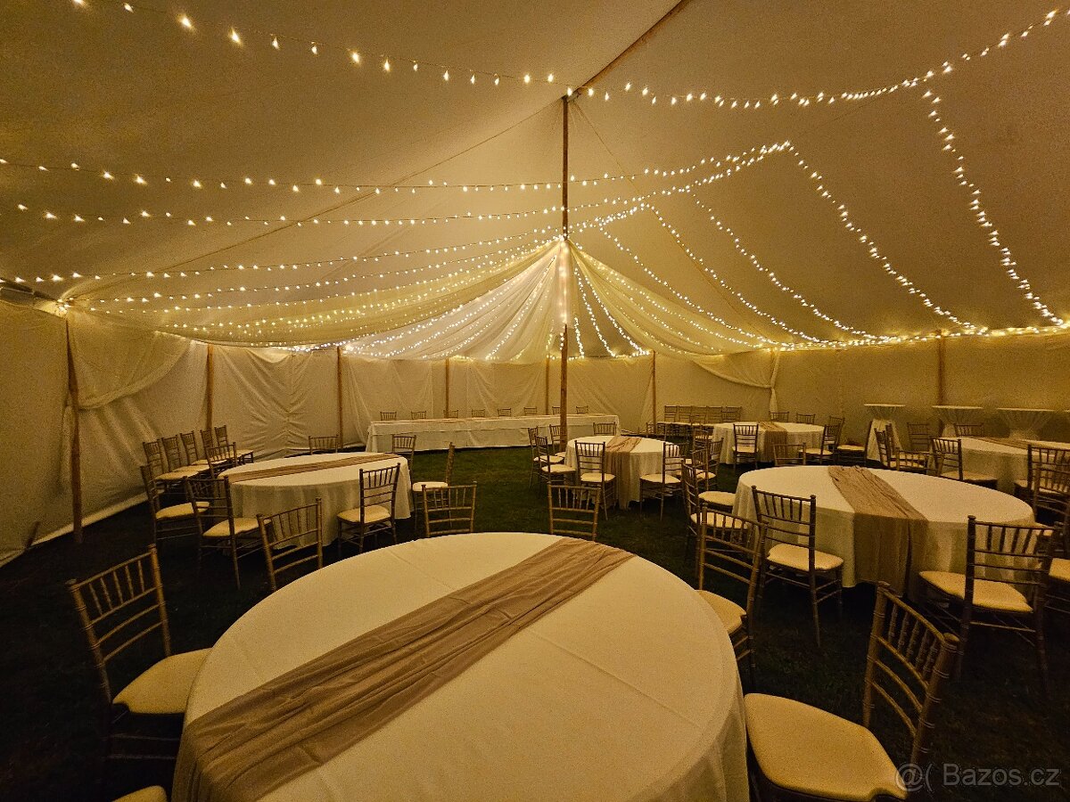 Dobrý den, nabízíme k pronájmu svatební párty stan šapito velikost 12 x 18 m nebo kruhové o průměru 12 m. Šapitó je možné dodat včetně podlahy nebo bez. Máme k dispozici i bočnice pro kompletní uzavření stanu. Dále stan můžeme vybavit kulatými nebo obdélníkovými stoly s ubrusy býlími nebo jiné barvy. Židle máme k dispozici 4 typy. Chiavari bílé, Chiavari zlaté, dubové hnědé Crossback, průhledné Louis ghost židle nebo bílé skládací bílé k obřadu. Venkovní prostor můžeme dovybavit bistro stolky, slavobránou, obřadním stolkem, chill zónou (skládací lehátka, slunečníky, perské koberce, atd), zábavou pro děti v podobě menšího skákacího hradu, atd. Více informací na tel čísle: +420775025800 emailu: [email protected] webu: www.gregorevent.cz www.svatbavsapito.cz