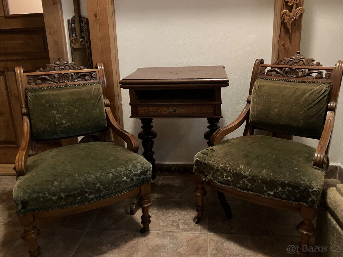 Cena: Dohodou. Prodám dvě křesla + karetní stolek.