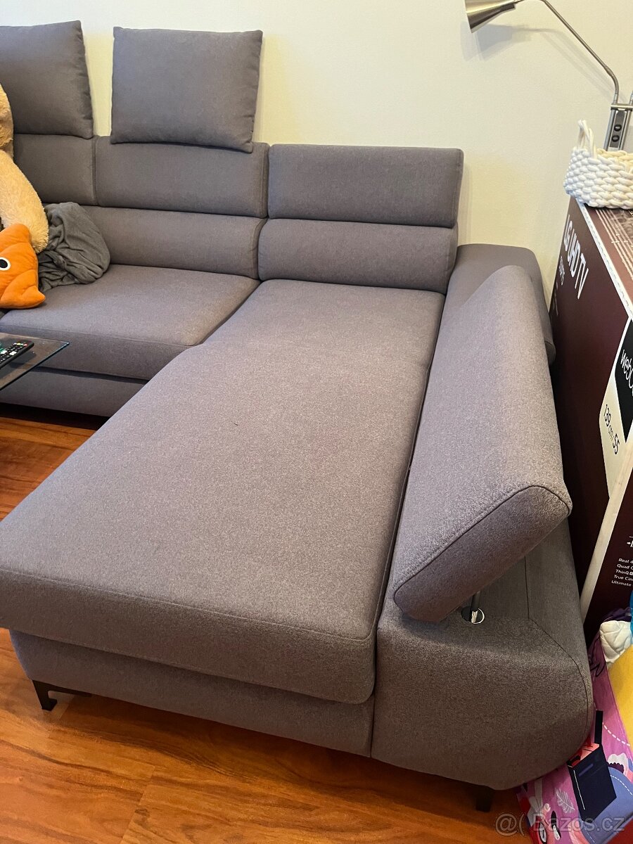 Z důvodu stěhování prodám sedací soupravu, rozkládací s úložným prostorem, polohovatelné opěrky. Použita par měsíců. Šířka 280 cm, hloubka 185 cm. Bez poškození a nečistot. Polštáře jsou součástí. Doprava po Plzni a okolí možná naši dodávkou, zdarma.