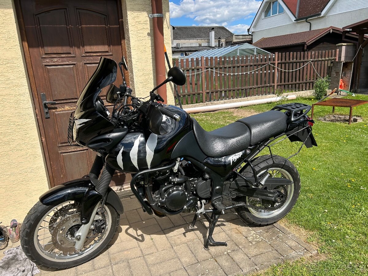 Triumph Tiger 955i, rok výroby 2002, 72 kw a 60xxx km. STK do 03/2029. Čistý, bez závad a úniků, v dobrém stavu. Originální zamykatelný topcase Triumph, mřížka světla, padací rám, aftermarket blinkry s homologací, vypínací 12V napájení, originální blinkry a textilní brašny předchozího majitele k tomu. Rok zpět výměna kapalin a pneu. Jezdí úžasně (v porovnání s Buell Ulysses a Ducati Monster), bohužel ale nemám čas a přijde mi škoda aby stál než mi odroste dcera. Dohoda možná