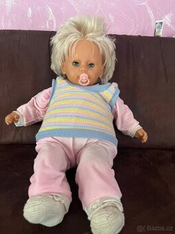 Retro panenka – mimino Nabízím retro panenku z 80. let, původní výroba v bývalé NDR (značeno “Made in GDR” a “Pigge”). Panenka má realistické oči, husté blond vlásky a je ve velmi dobrém stavu. Výška cca 60 cm. Vhodná i pro sběratele retro hraček.