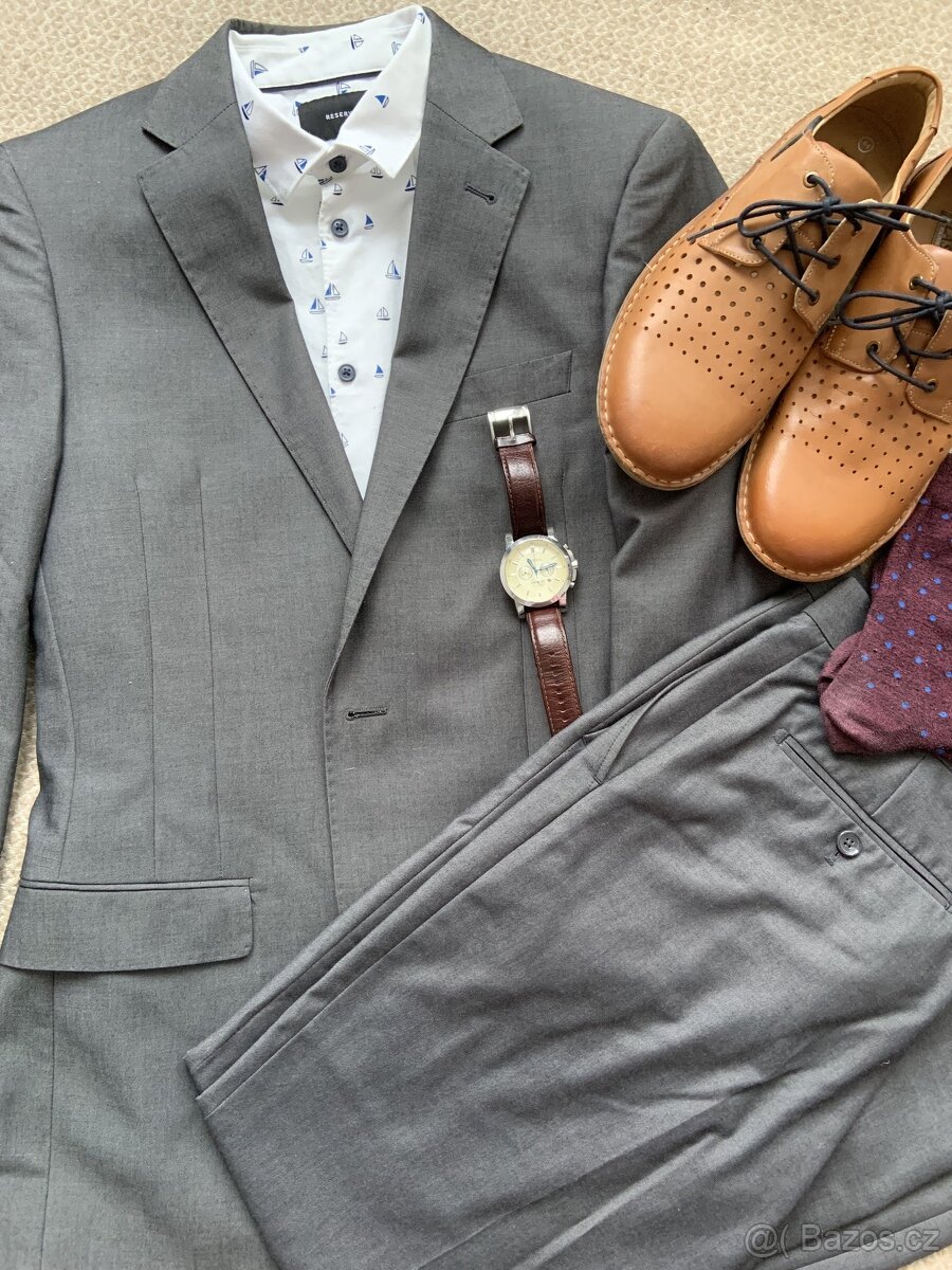 Komplet oblek sedy, F&F, parkrat nosen, sako a kalhoty