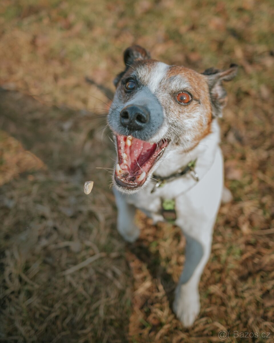Cena: Zdarma. Muffinek je Jack Russell teriér, který miluje jídlo, ale snažíme se, aby to na něm nebylo vidět. Kromě jídla má naštěstí i velmi rád hračky, obzvláště kulaté a pískací, které ho udržují v kondici. Muffinek miluje pohodové procházky, aportování a přetahování s hračkami, moc rád si začuchá i nějaký ten hlavolam s dobrotami. Je to starší pejsek, na jeho chuti k životu se však věk nijak nepodepsal. Muffin je jednou svou polovinou sladký psík doslova k sežrání, druhou svou polovinou je to psík, který klidně svého pána nakousne, když se mu něco nebude líbit nebo bude s něčím nesouhlasit. Jeho teriéří povaha určuje podmínky domova, který pro něj hledáme. Muffinek potřebuje domov u zkušeného pejskaře, který bude dodržovat stanovená pravidla společného soužití a nenechá si Muffa přerůst přes hlavu. Pro svou povahu se Muffin nehodí do rodiny s dětmi ani k jiným psům. Na procházku rád vyrazí s fenečkami, ani menší psi mu nevadí, ale doma potřebuje svůj klid a prostor. Muffinek je čistotný a váž