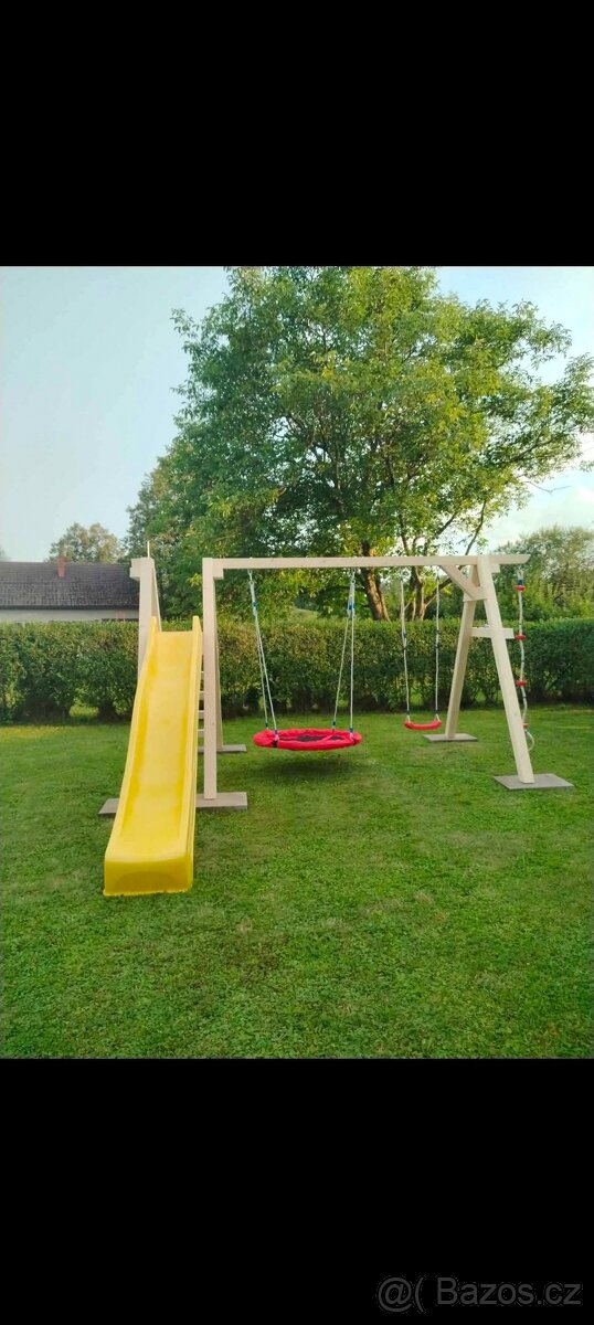 Dětské hřiště – masivní dřevěná sestava se skluzavkou 3 m Nabízím kvalitní dětskou herní sestavu z pevných konstrukčních hranolů 10 × 10 cm. Stabilní a bezpečná konstrukce vhodná na zahradu pro dlouhodobé používání. Parametry a výbava: Výška podesty: 150 cm Velká skluzavka 3 m s možností připojení vody Kompletní dřevěná konstrukce včetně veškerého spojovacího materiálu Kvalitní houpací háky s karabinami Desková houpačka Velký houpací kruh Šplhací lano Podrobný videonávod pro snadnou montáž Sestava je robustní, stabilní a vhodná pro děti na každodenní hraní. Díky videonávodu zvládnete montáž jednoduše krok za krokem. 💰 Cena: 13 800 Kč 📞 Kontakt: 732 917 967