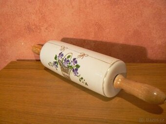 keramický váleček-fialkystarý váleček z předválečného období-ručně malovaný květinový dekor-košík fialek-pěkný stav viz foto-bez poškození