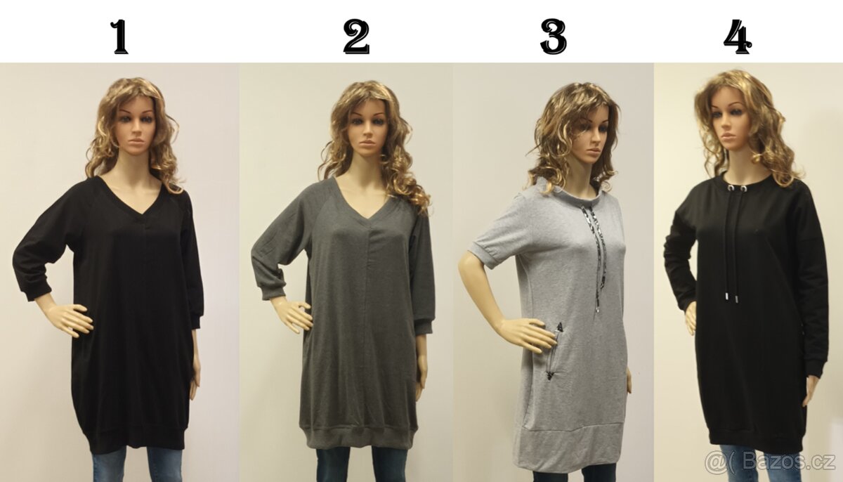 Zboží pochází ze zaniklého obchodu s oblečením a doplňky, je nové, nikdy nepoužité, bylo pouze rozbalené a vystavené na prodejně. K veškerému zboží jsou doklady o nabytí (faktury). Je preferován osobní odběr, zaslání ovšem určitě nezavrhuji. Uvedená cena je jednotná a je kus, při odběru všech 10% sleva. Údaje o zboží: M. šaty č.1 a 2: - materiál: 90% bavlna, 10% elastan - velikost: S/M, L/XL v obou barvách - lehčí materiál bez fleecu - bez kapuce, boční kapsy - 3/4 rukáv M. šaty č.3: - materiál: 90% bavlna, 10% elastan - velikost: S/M 1x - lehčí materiál, bez fleecu - bez kapuce, boční kapsy - krátký rukáv M. šaty č.4: - materiál: 90% bavlna, 10% elastan - velikost: M, L, XL - bez kapuce, bez fleecu - dlouhý rukáv V případě zájmu zašlu další informace včetně přesných mír a vzoru měření.