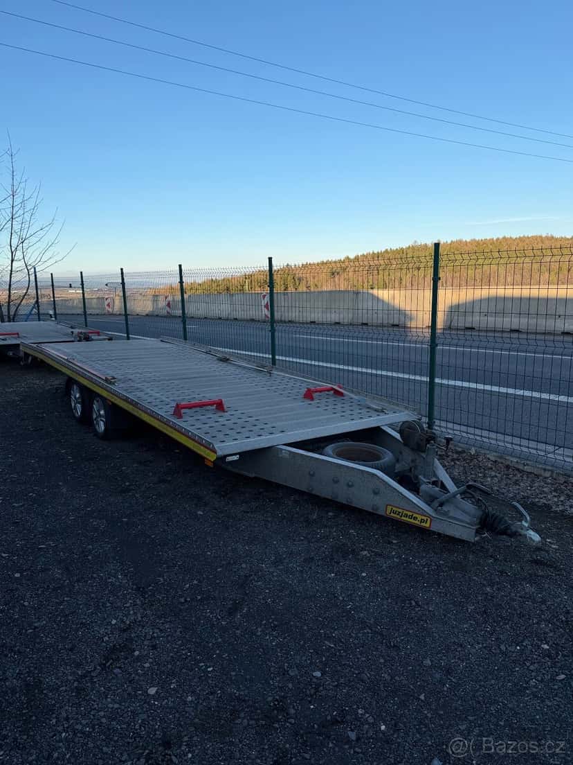 Prodám celohliníkový autopřepravník JUZJADE s navijákem,rok 2021 celková hmotnost 3500 Kg hmotnost vleku 610kg délka ložné plochy 550Omm šířka ložné plochy 2100mm prodložené skládací nájezdy pro sportovní vozy.