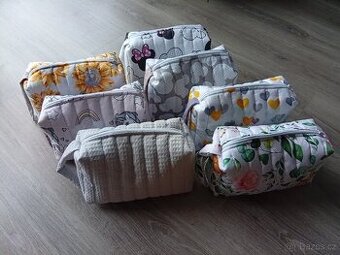 Kosmetická/cestovní taštička malá 22x17x4 cm...na zip... plněna vatelinem..150 Kč Kosmetická/cestovní taštička větší..rozměr 25x16x9 cm ..na zip.plněna vatelinem..Dostatečně pevná.... 250 Kč Kabelka je ze 100% bavlny... vyztužená, krásně drží tvar..rozměr 24x16 cm...150 Kč