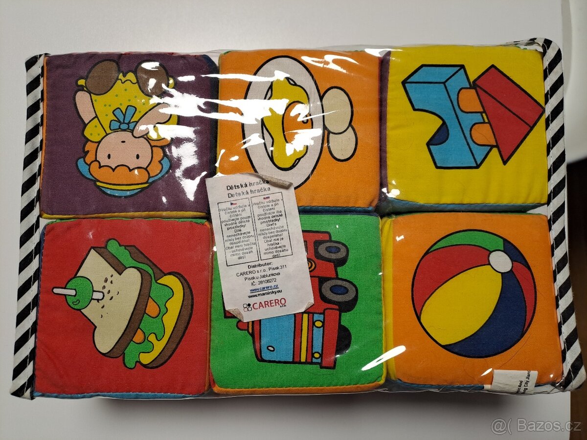 Prodám sadu šesti dětských pestrobarevných textilních kostek s obrázky o rozměrech 10x10x10 cm v plastovém obalu. Původní cena byla 810 Kč, nyní 120 Kč. Cena zahrnuje dopravné poštou nebo Zásilkovnou po ČR.