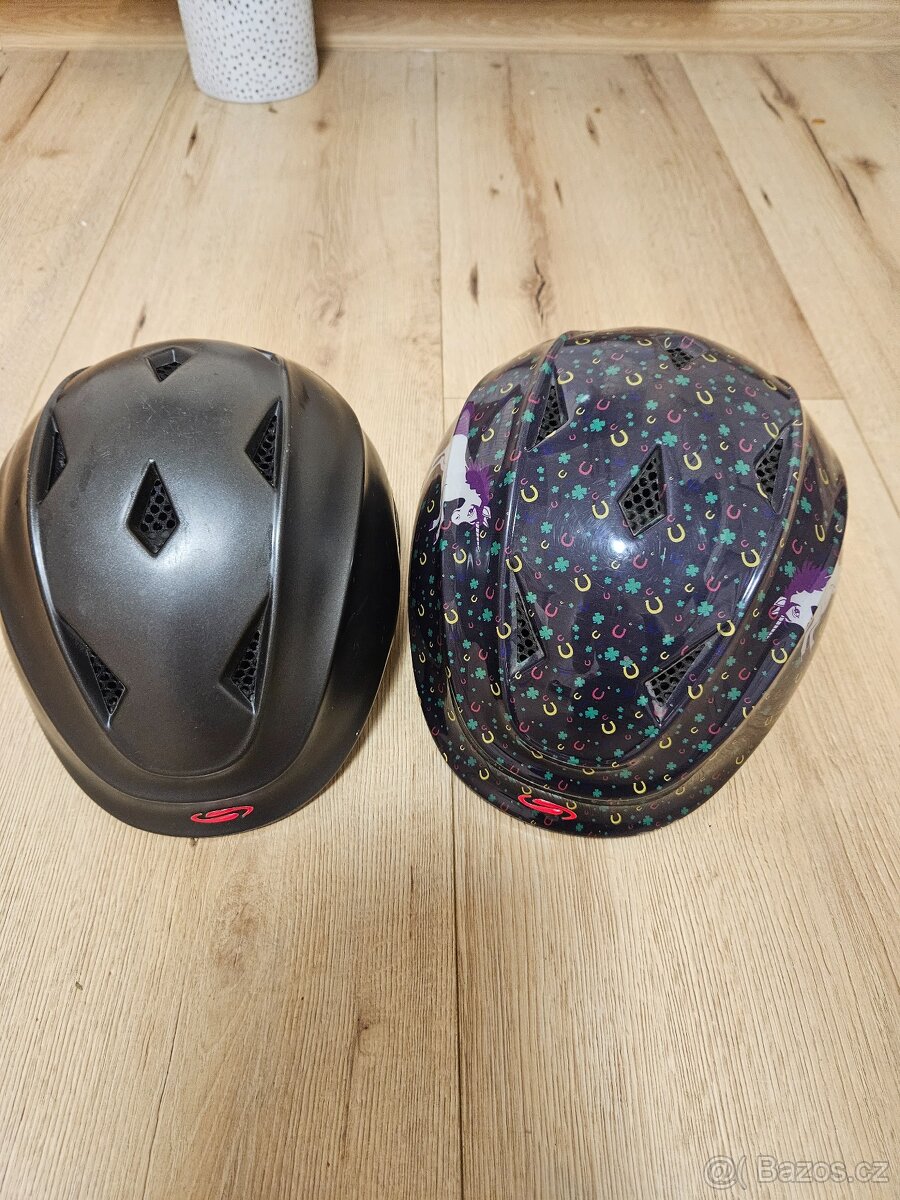 Prodám dětské jezdecke přilby swing. Menší pro děti od 3.let Větší tak od 6.let Nastavitelná velikost. 500 Kč za jednu.