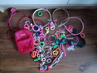 Set doplňků pro dívkyGumičky, sponky, vlasové doplňky, sluneční brýle a taštička kabelka. Cena za vše dohromady