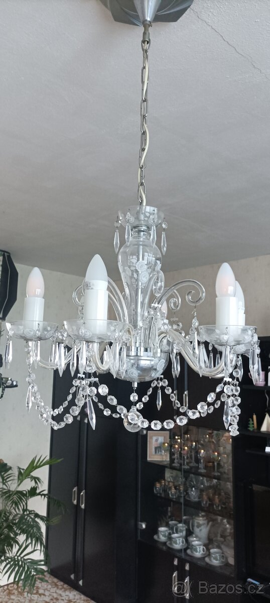Prodám skleněný lustr, šesti ramenný, nepoškozený, plně funkční