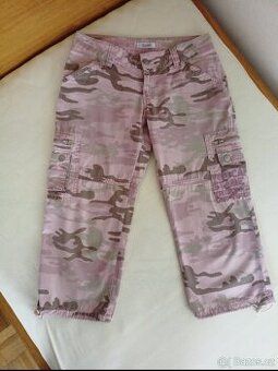 Prodám dámské 3/4 sportovní kalhoty vel. 34, zn. Pinkie, pestré, dle foto, kapsy, délka 75 cm, pas 38 cm. Cena 45,- Kč + poštovné, platba na účet.