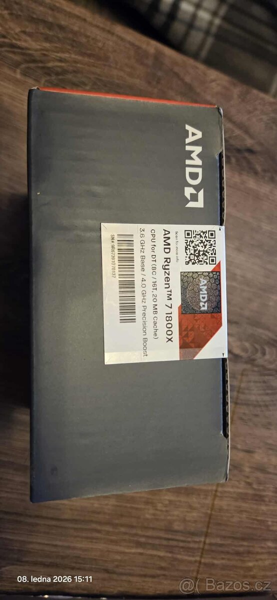 Prodávám použitý procesor AMD Ryzen 7 1800X s 8 jádry a 16 vlákny, taktován 3,6 GHz (boost až 4,0 GHz). CPU je plně funkční, otestované, bez poškození, kostra bez ohnutých pinů. Procesor je ideální pro starší systémy na AM4 platformě, výkonný pro multitasking, náročnější aplikace nebo jako upgrade na starší desce. Stav: použitý, funkční, otestovaný. Patice: AM4 Počet jader / vláken: 8 / 16 při osobním převzetí je možnost otestovat (do 15.01.2026 po tomto termínu bude nahrazená) nebo dávám 1 tyden od převzetí čas na odzkoušení možné se dohodnout i na ceně