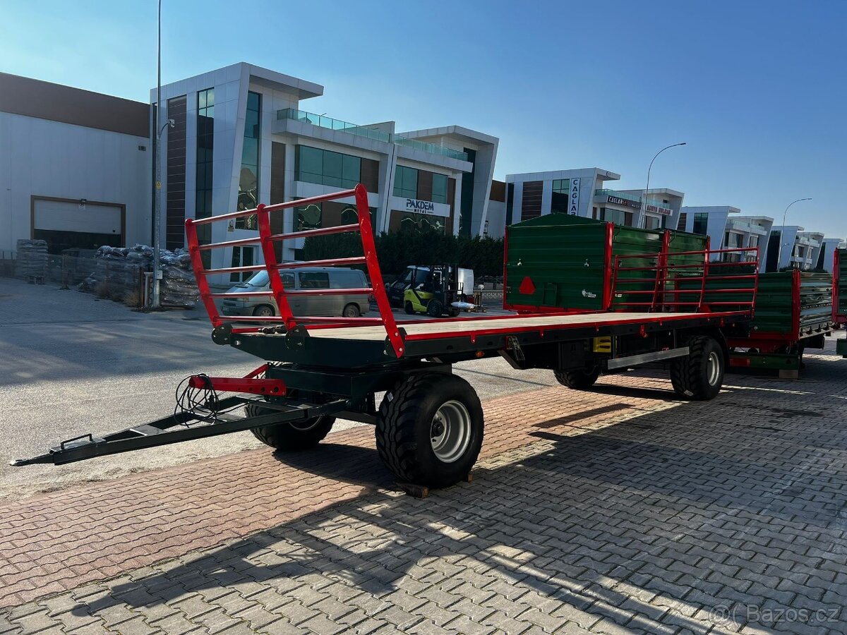Prodám nový přepravník balíků o délce 750 cm, šíře 240 cm. Nosnost 11 000 kg. Podlaha z plechu 4 mm. Výztuhy po 40 cm. Pneu 500/50-17 18 PR. Odpružené nápravy. Dvouokruhové vzduchové brzdy. Oko 40 mm. Homologace, bezproblémové přihlášení na SPZ. Box na nářadí, nádoba na vodu. Cena bez DPH.