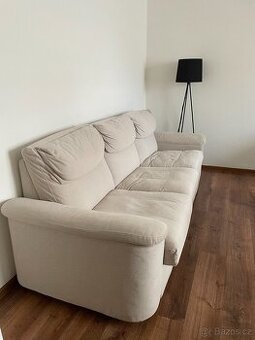 Nabízím krásnou a velkou sedací soupravu, velmi pohodlná. Kupovaná před 2 lety za 19990 kč (ale rok byt nebyl používaný a sedačka také ne). Krásna béžová barva – potah lze vyměnit na jinou barvu. Rozměry: Délka sedící části: 210 cm Hloubka sedící častí: 58 cm Celková délka 254 cm Celková hloubka 95 cm Celková výška: 90 cm Sedačku nabízím na Kladně v bytě v přízemí – nutný samostatný odvoz kdykoliv dle dohody.