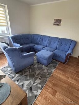 Prodám rohovou sedačku ve velmi slušném stavu s křeslem a bobíkem, vše jak je na fotkách. Bez úložného prostoru, neroztahující se. Rozměry 3 metry na 1,6 metru.Bez známek poškození. Více info na tel 776055291