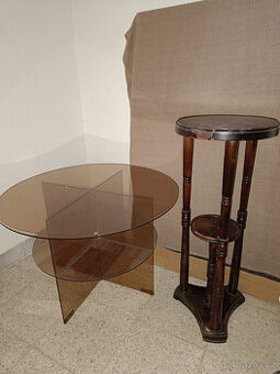 Prodam zachovaly kruhovy skleneny konferencni stul/stolek. Pevne sklo, v dobrem stavu. K nemu klidne i dvoupatrovy dreveny stojan na kvetiny, ktery je na fotce taky. Rozmery (prumer x vyska): - stul: 80 x 52 cm - stojan: 33 x 84 cm Cena: 350 Kc. Pripadne dalsi sleva v pripade rychleho jednani. Jen osobni odber. Podivejte se klidne i na dalsi veci na mem profilu.
