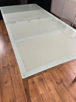 Prodám skleněný stůl a židle, délka stolu 180 cm, šířka 85 cm, dvě židle se lehce rozplétají (dá se přidělat tavnou pistolí)