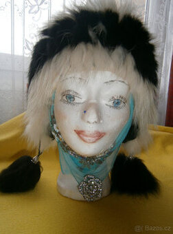 Zajímavá ,chlupatá čepice s bambulemi.Málo nošená.