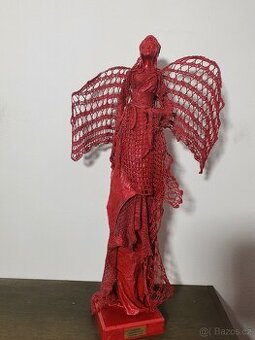 Autorská pevná socha na dřevném podstavci. Kvalitní zpracování technikou powertex. Pevné háčkované díly, Barva, kovová patina, lak. Vhodné do interiéru. Výška 68 cm.