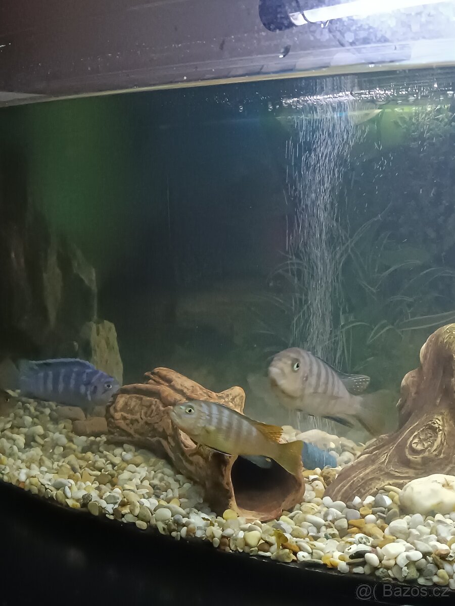 Prodám akvária viz foto . Jedná se o akvárium 70 l ,50l a 1l. Všechna vybavena ,větší doporučuji presilikonovat . 2x filtr ,vzduchování, 2x teploměr. 1l akvárko je s Betou , rasokouli a kytky živé . U větších jsou umělé ,tam jsou tlamovci žebra 3x a tilápie 3x menší druh. Navíc kýbl a pumpa na čištění a silný magnet a světlo které už ale odchází pomalu časem bude chtít nové už má nasvíceno .za vše komplet 3000,- . Prosím pište ozvu se vážnému zájemci pro domluvu .