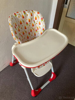 Prodám dětskou jídelní židličku zn. Chicco. Výškově nastavitelná, polohovací opěrka zad, snímatelná pultík. Používaná, dobrý stav, chybí pásy.