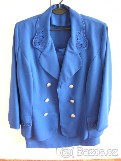 Nabízím tento modrý kostýmek, moc pěkný, ale už se do něj nevejdu.