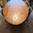 Stůl oválného tvaru z kvalitního dřevěného masivu nizozemské značky Gert Snel. Rozměry: 2,4x1,1m Součástí je 6ks židlí na kovové konstrukci, potažených lahvově zelenou koženkou, která je na krajích lehce opoužívaná (přikládám i foto zblízka). Cena je pevně stanovená. Zájemce si ručí za vyzvednutí i odvoz. Prosím, první kontakt skrz SMS nebo WhatsApp, děkuji.