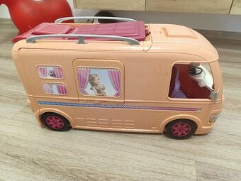 Barbie karavan 500 Kč. Bílé auto 100 kč, růžové 80 Kč.