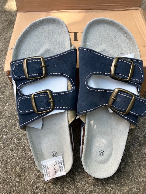 Prodám nové nepoužité pánské korkové pantofle, vel. 42, tmavě modrý pásek. Posílám přes Zásilkovnu.