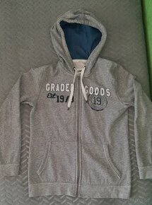 Celopropínací šedá bavlněná mikina s kapucí a kapsami. U nápisu drobné mini skvrnky. Jinak v pořádku. Posílám přes: ZÁSILKOVNA, BALÍKOVNA - dle aktuální ceny, případně nabízím osobní odběr v Rožnově pod Radhoštěm. Vyberte si více věcí z mé nabídky = jedno poštovné. Pište, dotazujte se, volejte, ráda odpovím :o)